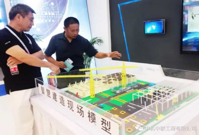 展廳里,智慧建造現(xiàn)場模型栩栩如生,形象而直觀地展示著中機(jī)中聯(lián)智慧建造的雛形。李儒冠書記認(rèn)真地參觀了模型,興趣盎然地聽取了現(xiàn)場工作人員的講解匯報(bào),并不時(shí)地提出相關(guān)意見。